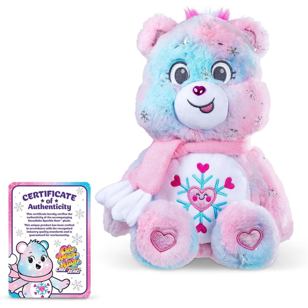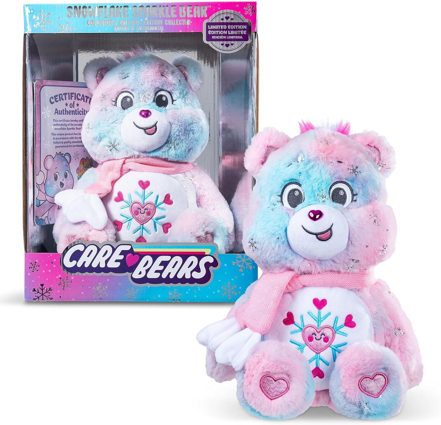 All New – Collector's Edition Snowflake Sparkle Bear – Amazon Exclusive Contains Certificate of Authenticity. Features pink & blue tonal body, heart pom pom scarf and snowflake with heart details belly badge. Soft shine & sparkles speckle the super soft plush and details. She makes a great holiday gift for girls, boys and Care Bears collectors ages 4+.
